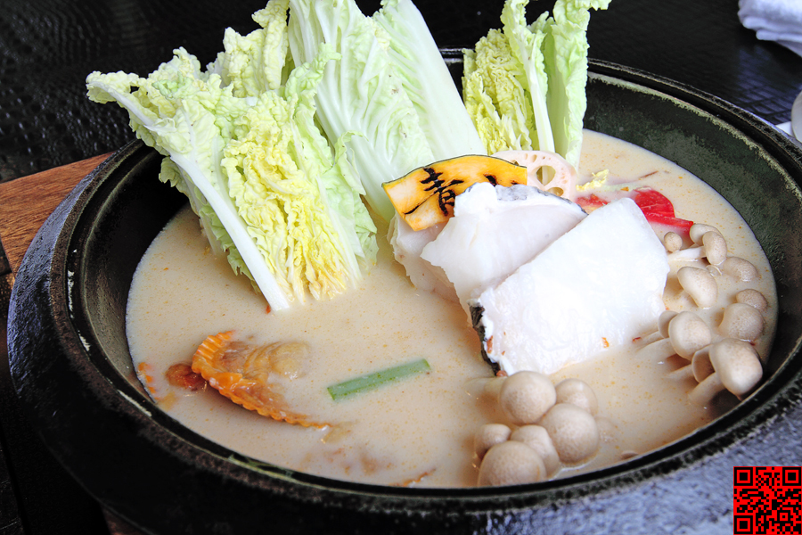 新鮮的海鮮與多種的食蔬配料沉浸於香濃的牛奶鍋內,
