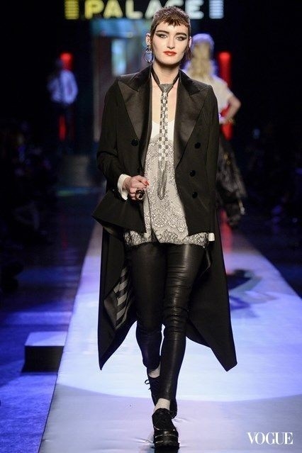 大門上寫著碩大的「Palace」一詞,保鑣叼著一支煙等待夜晚的降臨。這場秀重現了1980年代放蕩不羈的夜店生活,人們在巴黎蒙馬特紅極一時的Le Palace狂歡整晚,而Jean Paul Gaultier的秀則掌握了不斷變遷的社會道德觀念—關於性別在生理上與心裡上同時認同與否的精神所在。