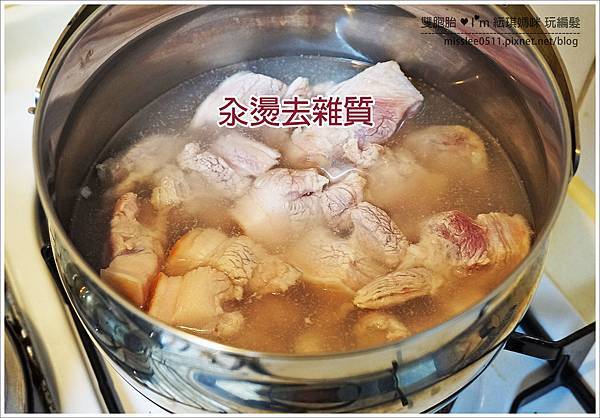 接著煮一鍋水,將切好塊狀的五花肉稍微汆燙一下去雜質。
