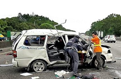 就在接近收費站、準備回數票的同時,一瞬間手中的回數票卻突然掉了,當下的直覺反射動作是立刻撿起來,但另一隻握著方向盤的手卻因此轉動方向,整個反應不及,這時的猛然剎車,讓車身緊急打轉了好幾圈,就撞上了路肩的護欄,當下她雖然完全無任何外傷與出血的狀況,但卻感覺自己的身體動彈不得,想動卻怎麼也動不了的她只能靜靜在車內等待。