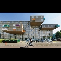 MVRDV建築事務所最具代表性的阿姆斯特丹WoZoCo老人集合公寓利用懸挑手法,讓陽台有如飄在半空中,創意且實務的設計,顛覆大眾對於社會住宅的想像。