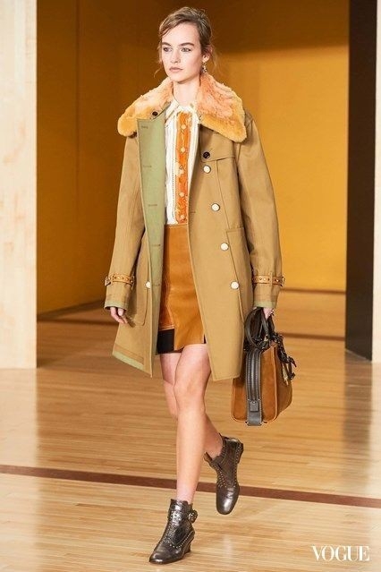 或許是來自英國的緣故,Stuart Vevers對美式文化與星條旗抱持著憧憬。第一套充滿貼紙般補丁的「校隊」外套,便充滿了年輕與快活的氣息;而後不論是簡單或是充滿印花的短裙都洋溢著女孩的後青春期魅力。值得一提的是,Coach的包包也一度被認為是少女們展翅高飛前的完美畢業禮物。