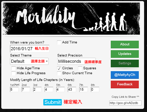 ▼現在可以以秒為單位看自己多老了!順便感嘆時間流失的迅速!