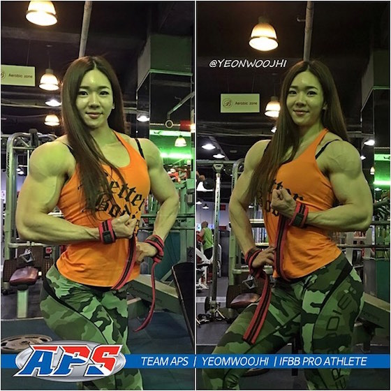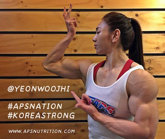 這位人稱「金剛芭比」的韓國女孩名叫Yeon Woo Jhi是國際健美總會(IFBB)的職業健美選手。脖子以上完全是個漂亮女孩,妝容精緻、長髮飄逸還有點娃娃臉;脖子以下…… 不用多說,就是個職業健美選手無誤。