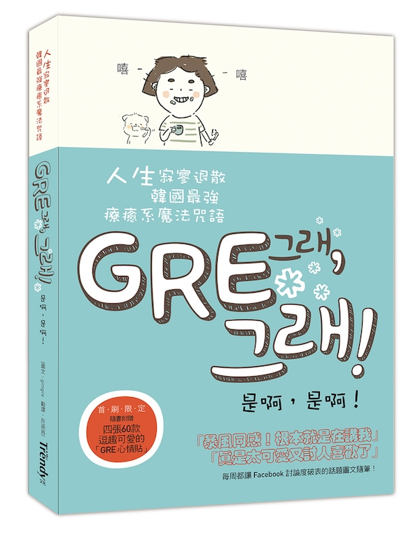 Facebook和部落格廣受年輕人喜愛的韓國最強逗趣插畫家金GRE,筆名由來是喜歡的顏色「灰色(GREY)」,同時也是「是啊」的韓語讀音。喜歡觀察人,也喜歡聽故事,在聽著人們的故事時,不知不覺也想說出自己的故事給大家聽。是稀鬆平常又普通的生活日常與心情感受,但也因此是能讓大家感同身受,隨之歡笑、獲得安慰的故事。打開這本書的每個瞬間,都能感受到親切與溫暖。