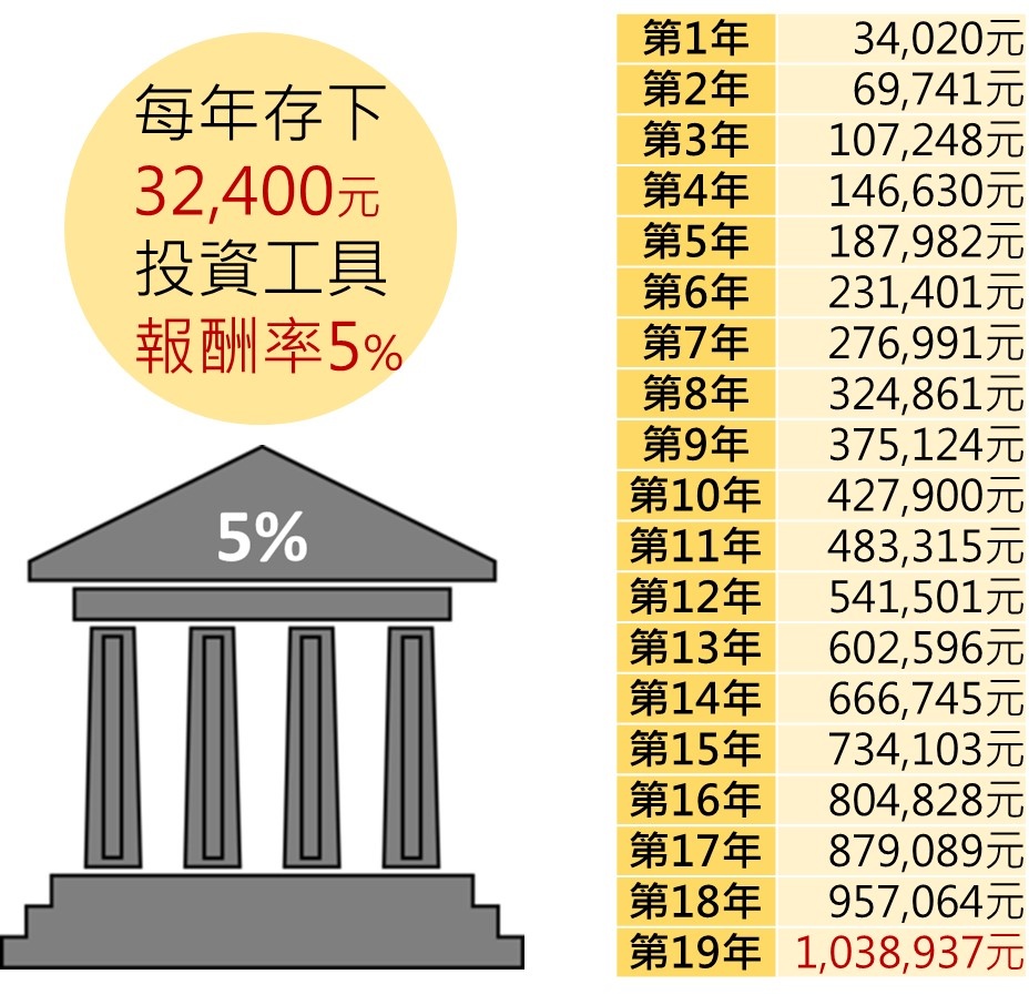這筆錢省下來,每年都投入5%報酬的工具,