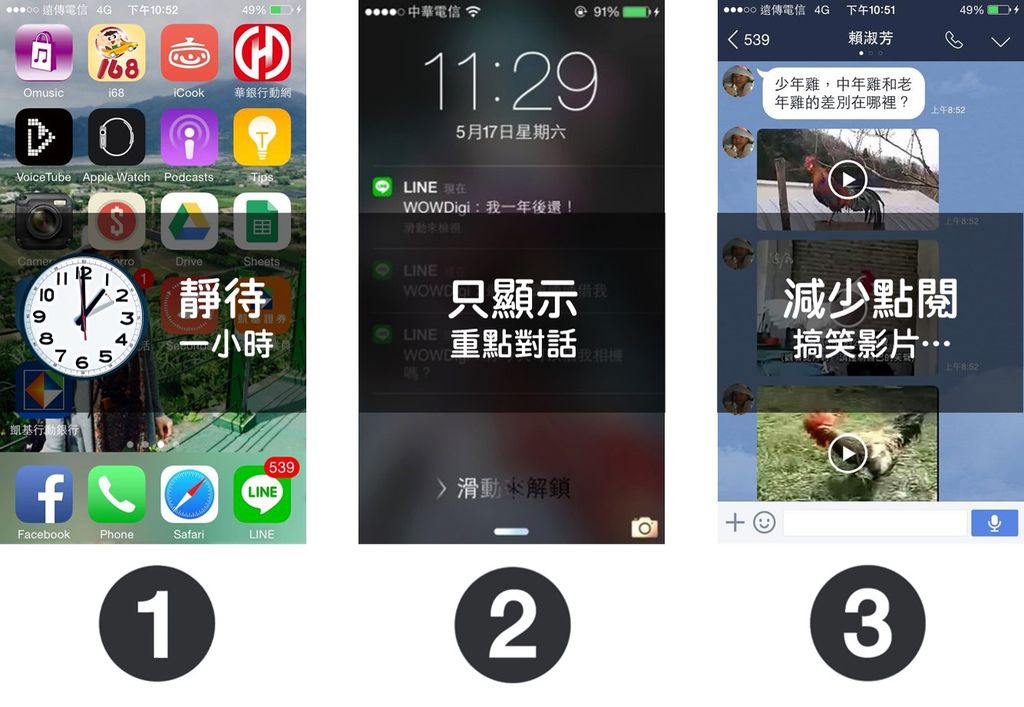 1. 限制自己每小時(自訂)看一次LINE