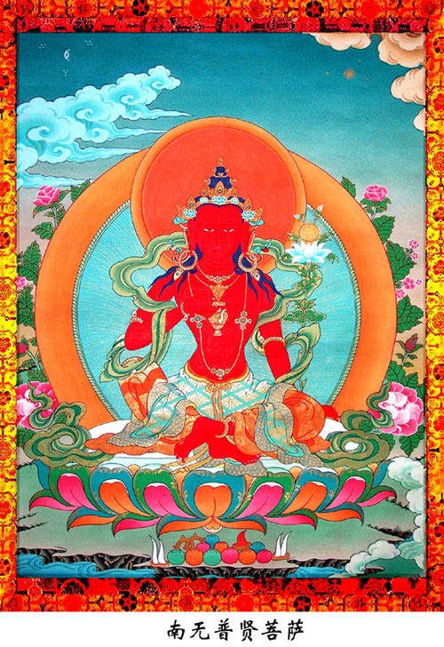 普賢菩薩名號的是Samantabhadra。普賢菩薩輔助釋迦佛弘揚佛道,且遍身十方,常為諸佛座下的法王子,他和釋迦牟尼、文殊菩薩合稱為“華嚴三聖”。故普賢行願品言:普賢行願威神力,普現一切如來前。’又言:十方如來有長子,其名號曰普賢尊。’普賢菩薩,不但能廣贊諸佛無盡功德,且能修無上供養,能作廣大佛事,能度無邊有情,其智慧之高,願行之深,唯佛能知。