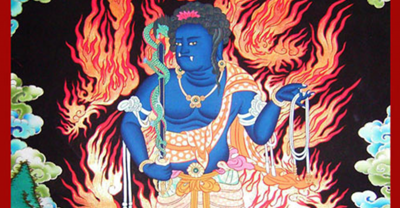 不動明王其誓願為“見我身者發菩提心,聞我名者斷惡修善,聞我法者得大智能,知我心者即身成佛。”威力甚大,不論漢地佛教或藏傳佛教,都重視修習本尊法門,又被稱作大威力不動明王或常住金剛。