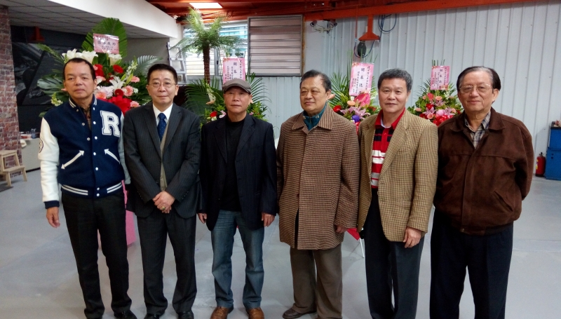 圖; 左至右台灣音響發展協會理事長 劉紹文, 恩雷公司董事長 林孝宗, 中驛汽車董事長 陳志林, 中華維徳文化協會理事長 傅仁雄, .中驛汽車董事 魏志松, 全球通航空顧問 劉景耀(記者孟憲玉攝)
