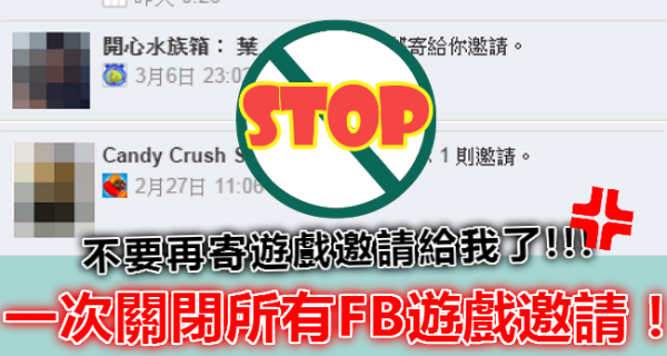 時常使用Facebook的人一定常常收到朋友的遊戲邀請,像小編就常常收到朋友寄的Candy Crush和開心水族箱的邀請,但是明明對這些遊戲沒興趣,還要一直接收這些遊戲的通知眞的超級無敵煩,現在有一個方法可以讓你跟這些煩人的通知說 bye bye,快來跟小編一起看看該怎麼做吧!