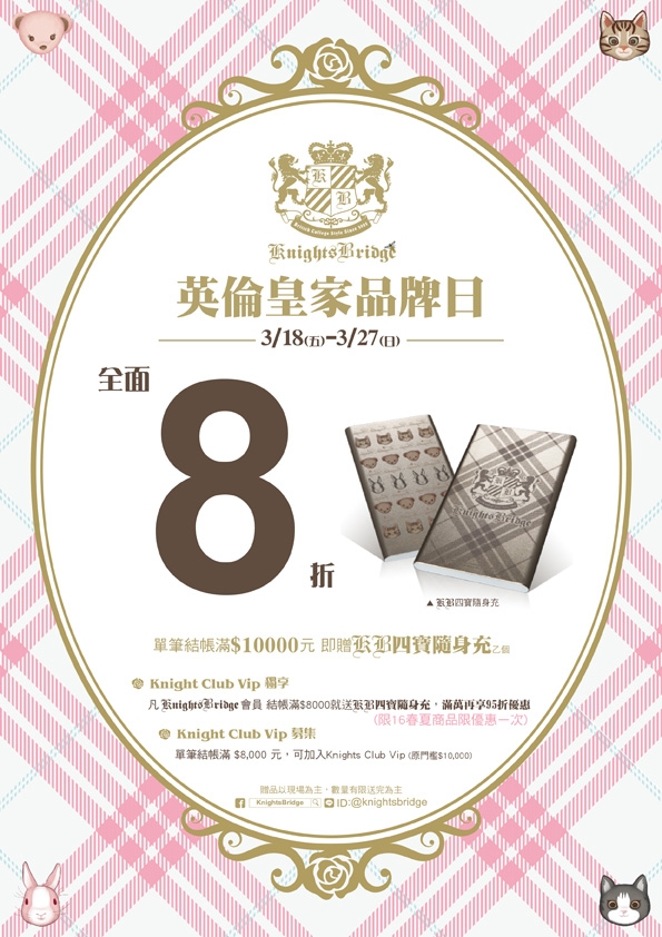 ★VIP 募集門檻: KnightsBridge女裝滿8千元
