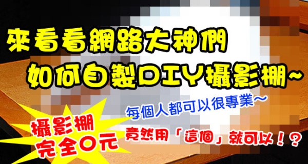 相信很多網友都有照片怎麼拍都拍不好的這個煩惱,想把物品拍美但就是沒辦法…,買不起攝影棚沒關係,咱們來看看網路那些大神們如何自製攝影棚,把每張照片都拍的美美的~~趕快DIY一個攝影棚,讓每張照片拍出來就跟專業的一樣!