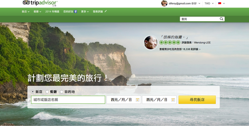 (1)首先要介紹第一個比較大的聯合評價網頁:tripadvisor。