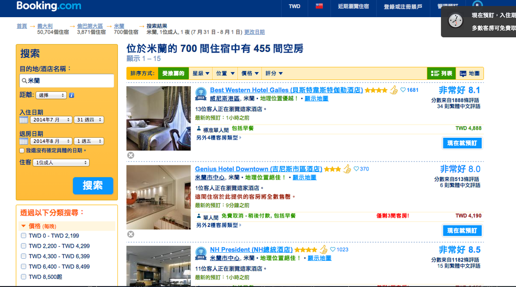 我選到的那一間,可以看一下右邊的價錢你是不是接受~