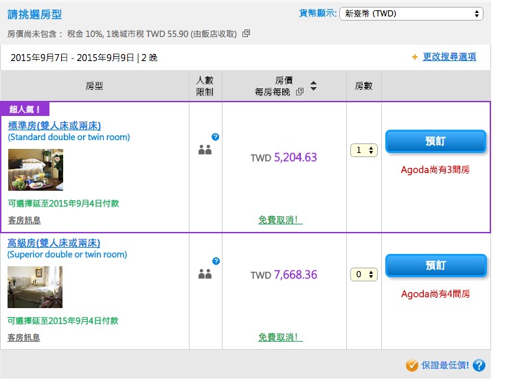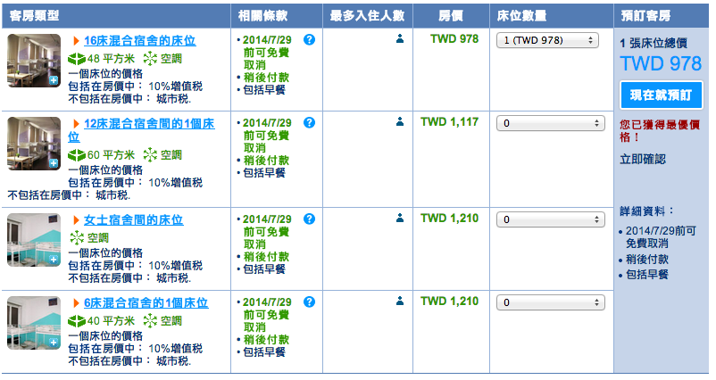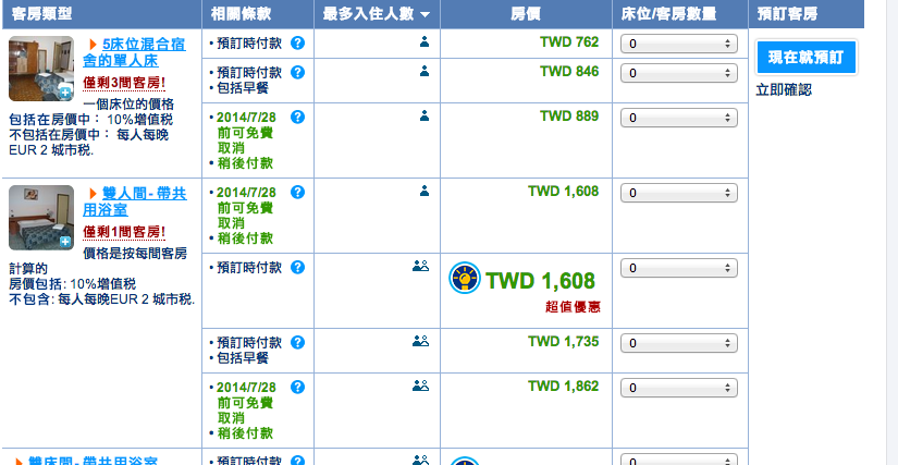 大部份都標示的很清楚,地點、房型、價錢、含不含早餐等等,