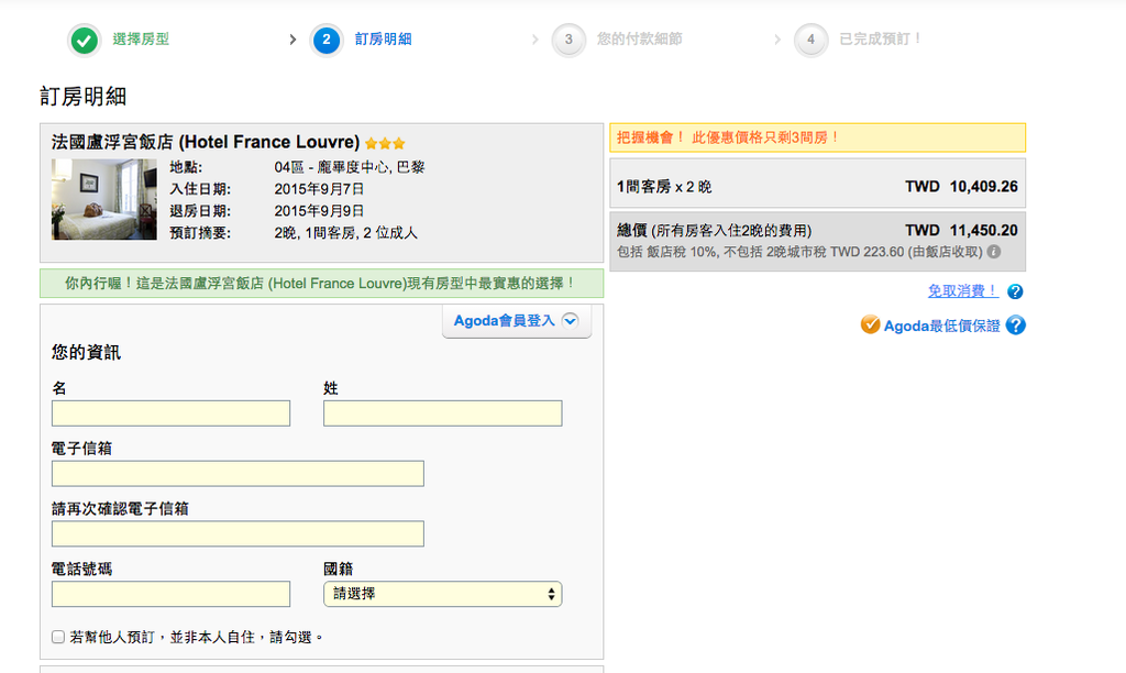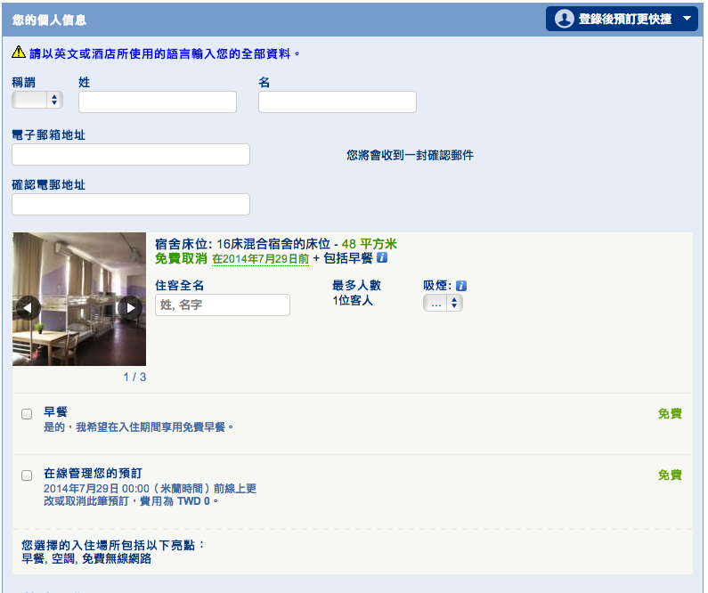 然後就會跑出訂房的資料,如果喜歡,就可以勾選~全部中文~無痛!