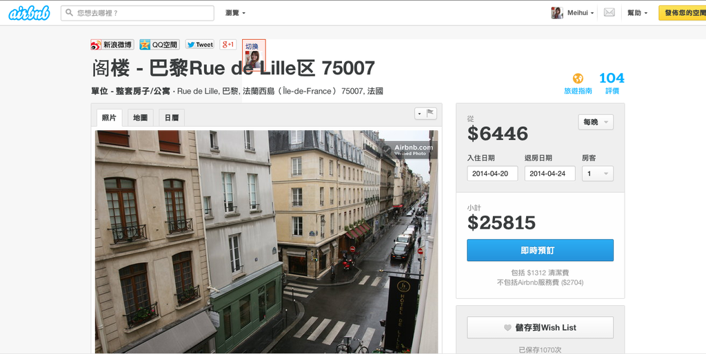 (上圖是巴黎的公寓,這倒是在巴黎的公寓訂房網訂到的~詳見以下連結)