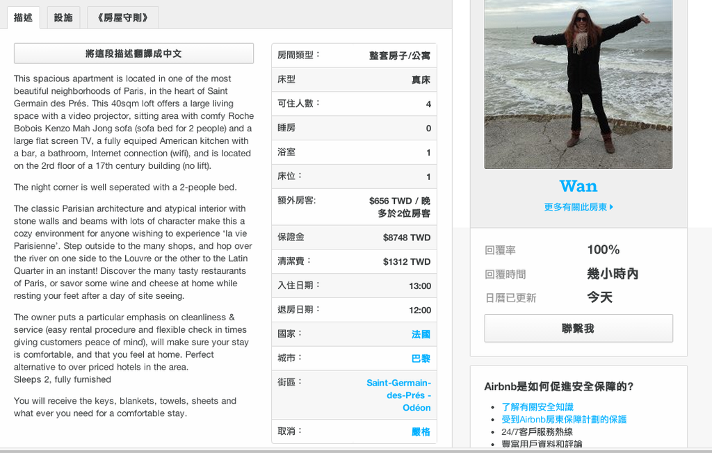 下方則有房東自己的簡介與對房屋的介紹,還有街區全景、房屋配置等等。
