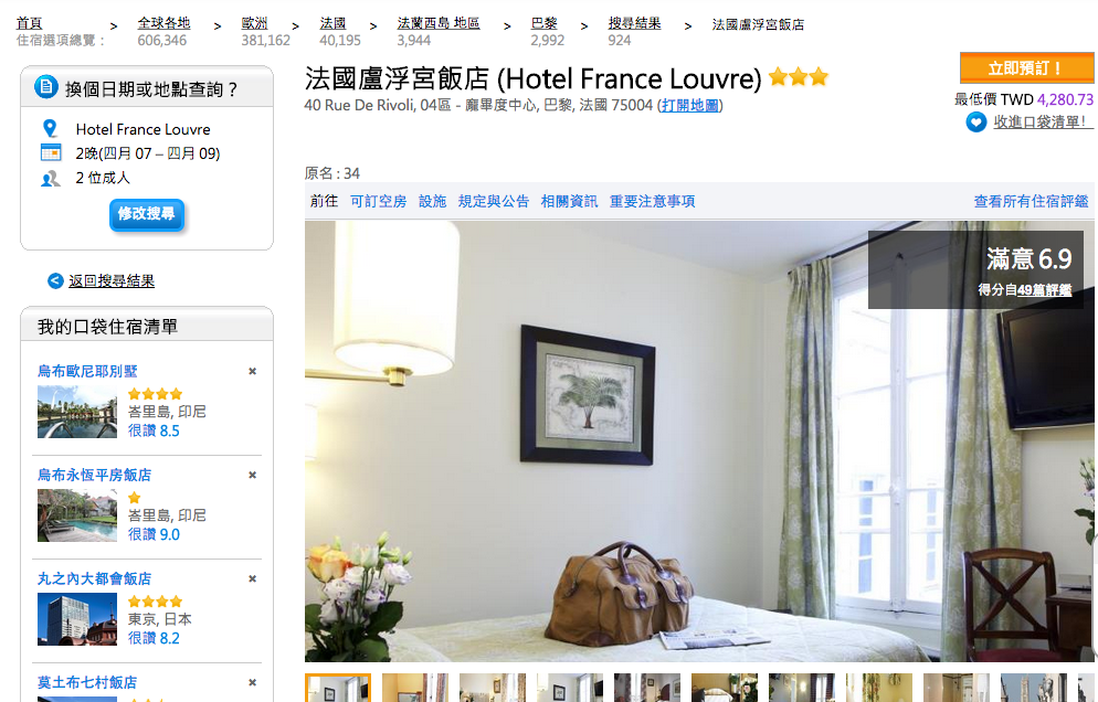 這個網站我也常上去亂看飯店,想像一下如果有一天我要到某個地方旅行,飯店要定哪一間。