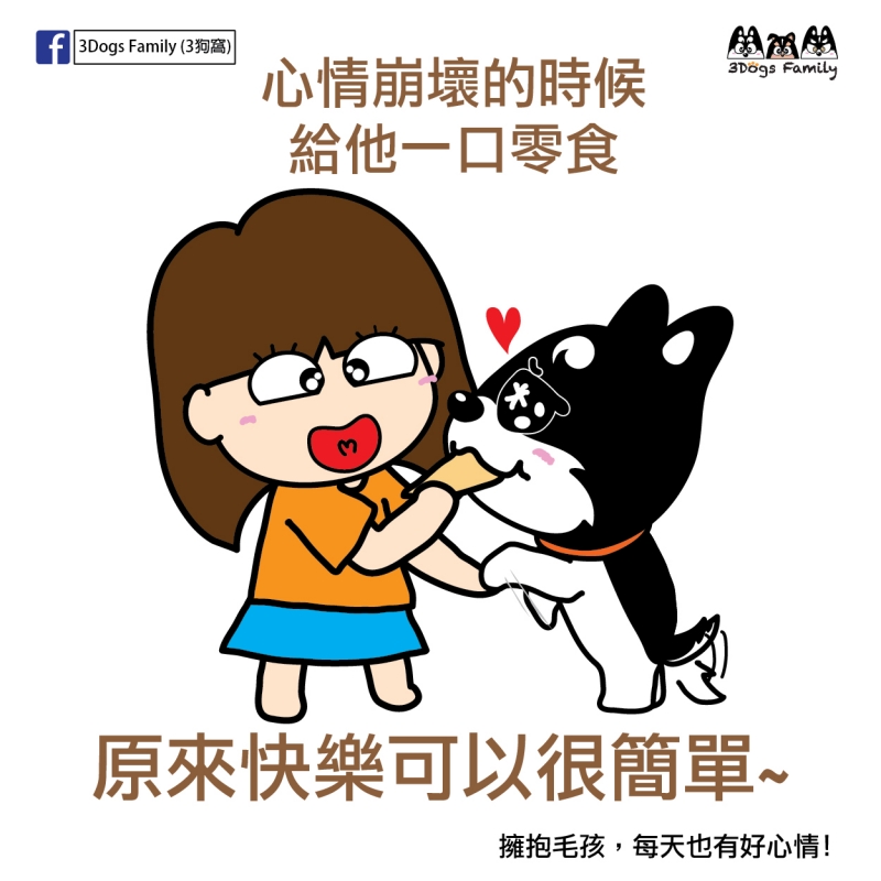 每天總會遇上一些令人心情崩壞的事情,不快樂很容易,要擁有常常喜樂的心卻需要努力學習,今天就大方地請毛孩吃一口零食,你就會發現,原來快樂可以很簡單﹗(減肥的事明天再說吧XD)