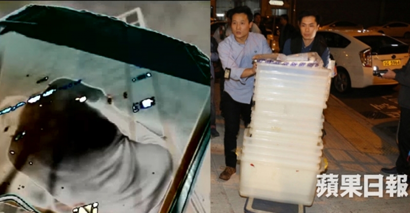 昨晚香港荃灣一棟辦公大樓莫名發出惡臭,警方獲報前往調查,卻在破門而入後發現屋內只有一個長寬各90公分的方箱,上面被用棉被蓋住,惡臭正是從這裡發出,警方剖開後赫然發現,裏頭有具腐敗男屍,牆上也有血跡。