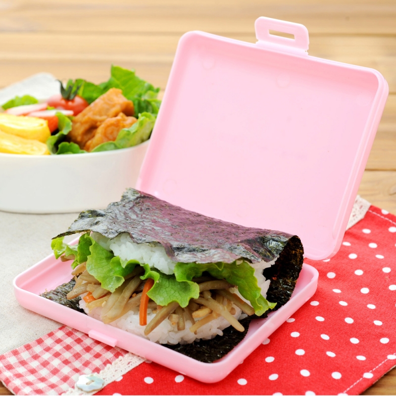 免捏御飯糰不像日式傳統飯糰那樣,需要用手去捏黏黏的米飯,而是用疊一疊、包一包的方式,只需要四個步驟就能快速完成:鋪平海苔→疊上米飯和配菜→從四邊折起海苔→固定後切半就OK。製作過程簡直零失誤!而且飯糰不容易散開,帶著走非常方便。