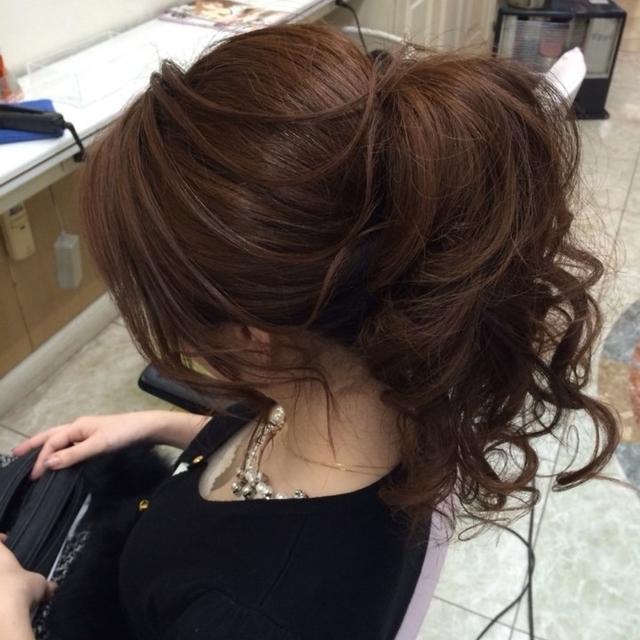 橡皮筋綁的地方把頭髮抓得蓬〜鬆,可以期待看起來生動活潑的蓬鬆變化。