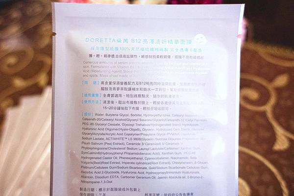 這次要和大家推薦DORETTA朵芮的B12亮澤活妍精華面膜
