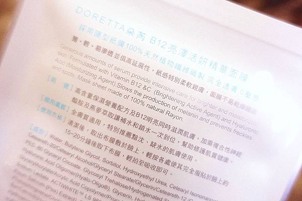 DORETTA朵芮的B12亮澤活妍精華面膜真的很薄很透膚