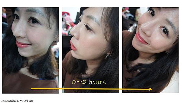 過了2個多小時鼻頭開始出油,一直到了傍晚脫妝好可怕喔~~哈哈