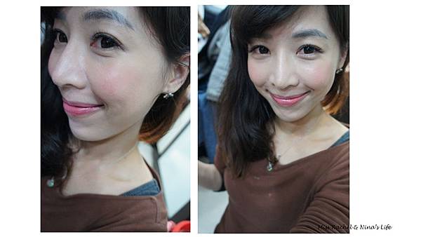 完妝後的樣子看起來算是蠻漂亮的,缺點就是實際擦在臉上沒有到很浮貼的feeling~~