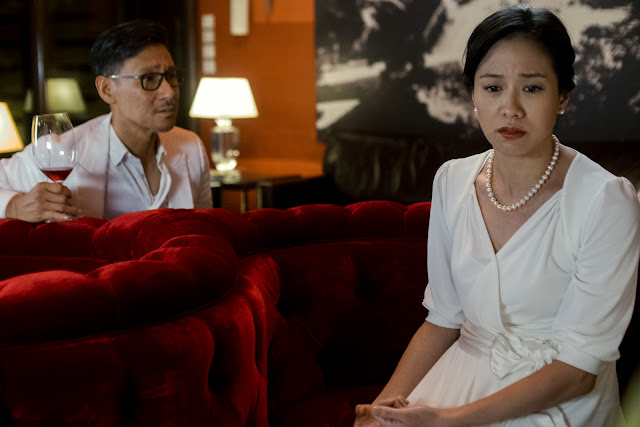 全身穿著純白的兩人,像是在利用衣物彰顯著自己的清白,卻也雙雙濺上了酒漬,那使人歡愉又使人墮落的葡萄酒,只要染上了,誰都不是清白的;他們兩人誰都有罪,誰也都沒錯。就像這場羅生門的肇事者「語言」。Michelle的傷害,是因為杜牧師酒後亂性的言語而受到人格污辱;杜牧師的傷害,是因為Michelle報復性的語言而得到身敗名裂的下場,但其實這並不存在對錯。