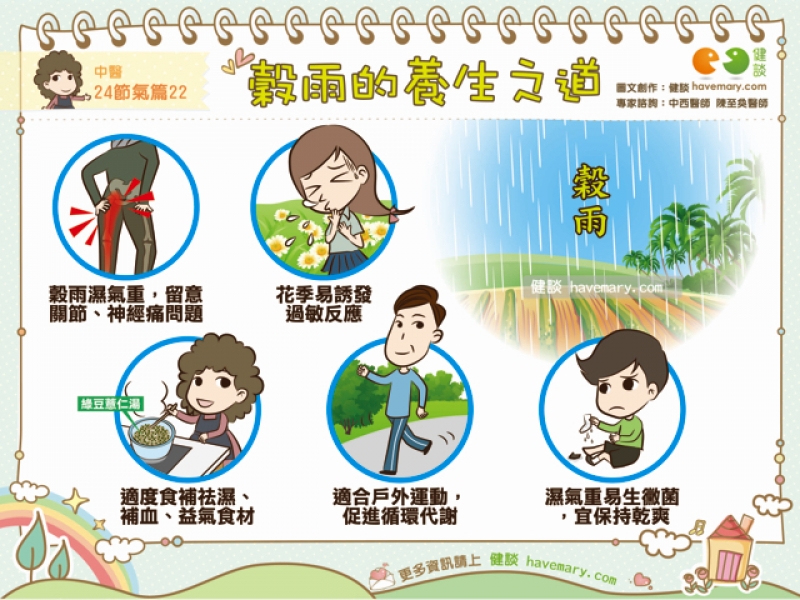 1. 穀雨前後雨量增多,濕氣也相對較重,常為坐骨神經痛、關節問題的發病時期。
