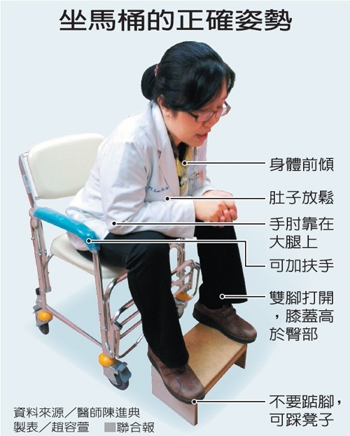 書田診所泌尿科主任洪峻澤表示,對膝蓋不好的人來說,使用坐式比較舒服。若使用蹲式馬桶,也最好要蹲到最低,比較能夠放鬆骨盆底肌。坐姿則應配合適當高度的小凳子,可以讓骨盆底肌更放鬆幫助排便。物理治療師賴郁芬則引用醫學研究指出,不管男性、女性,坐姿加上足夠的足部支撐,最能有效放鬆骨盆底肌。依據下列步驟,正確坐馬桶,將可有效改善解尿問題: