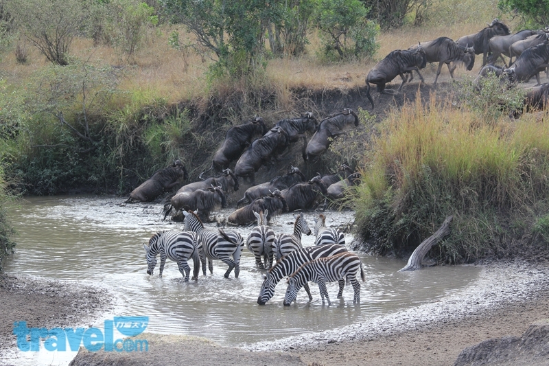 開著四輪傳動的司機兼導遊宛如草原上目光精準的獵豹,遠遠地就看到動物出沒的蹤跡,加上司機們彼此透過無線電通報,很快就能帶領遊客堵到非洲草原上最精采的野生動物。位於東非大草原上的動物大遷徙,是動物逐水草而居的天性使然,每年夏天,成群動物從南方坦尚尼亞一帶的色倫蓋提大草原開始往北移動,來到肯亞的馬賽馬拉大草原,其中越過馬拉河的最經典畫面,是可遇不可求;等到天氣轉涼時,動物們又再往南移回,如此年復一年。