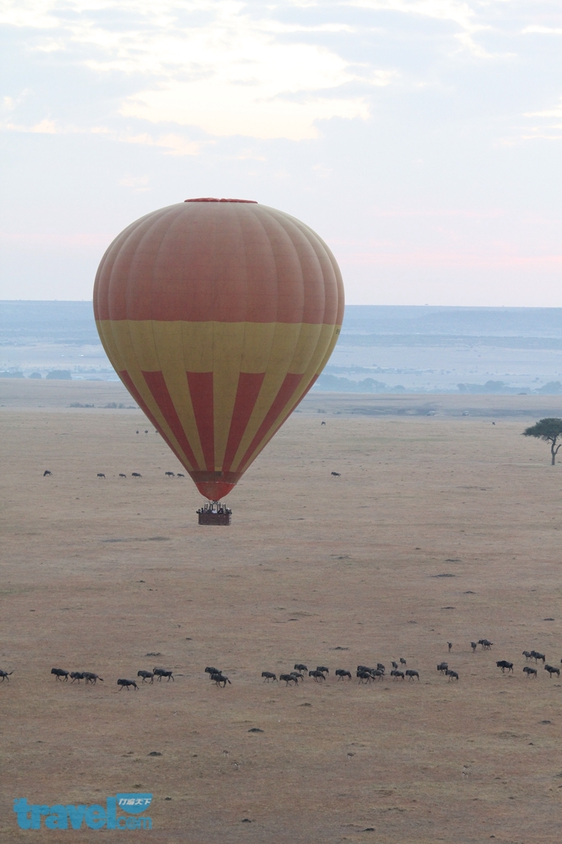 想要感受非洲大草原上動物大遷徙的奇景,光是坐在吉普車上追逐是不夠的,居高臨下的熱氣球是絕對要體驗的活動,從高空往下俯瞰成千上萬的斑馬、牛羚在草原上奔跑,才能感受到動物大遷徙的壯觀。熱氣球都是天未亮、氣流穩定之時必須升空,因此又能欣賞到大草原上的日出,令人無比感動。
