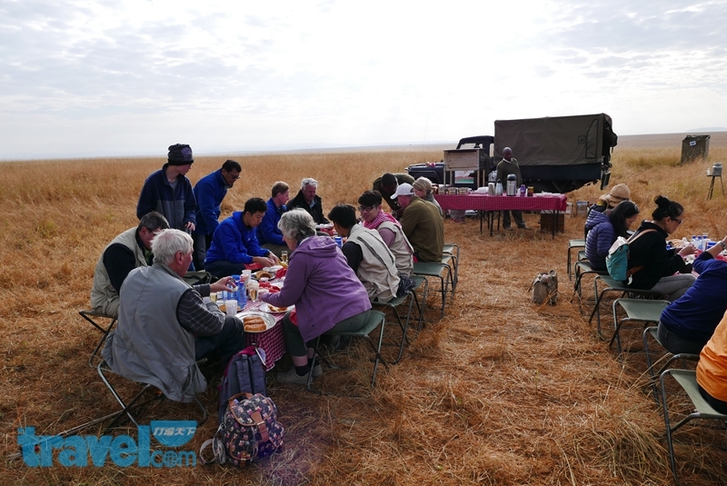 而你能想像在一望無際的大草原上用餐的情景嗎?當熱氣球航程結束後,工作人員早已經在草原上準備好豐盛的香檳酒早餐,我們迎著日出吃早餐,作為這趟草原熱氣球追逐動物之旅的完美句點。