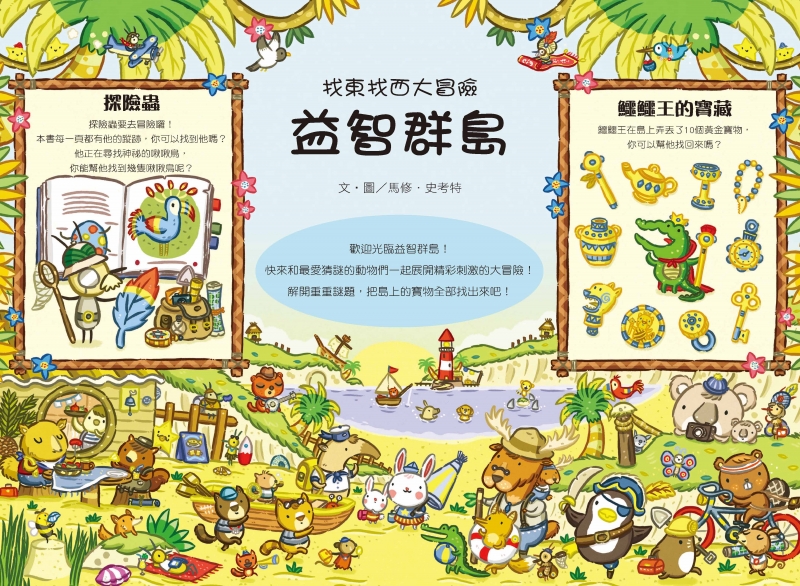 島上有圖畫謎題、數字遊戲、超炫迷宮、腦筋急轉彎,還有好多有趣的遊戲!