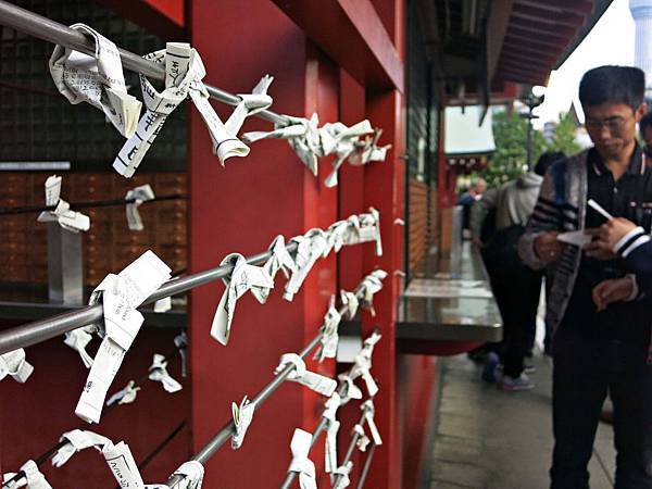 只要將籤綁在淺草寺裡,神明就會幫你化解掉壞運:)