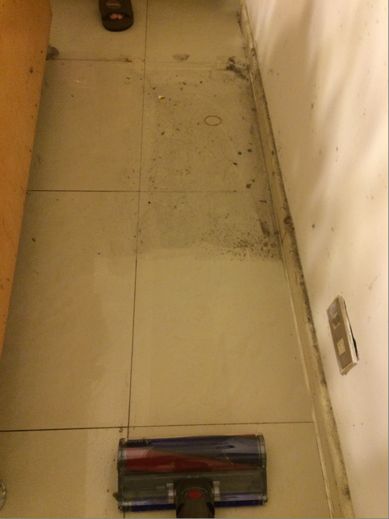 購買後的第一個任務就是櫃子後面的髒污大魔王了!通常櫃子後面都是全家大掃廚的時候才會清理,但是一拿到機器後,決定先測試看看清潔力,迫不及待來試用了~櫃子搬開後果然很髒……