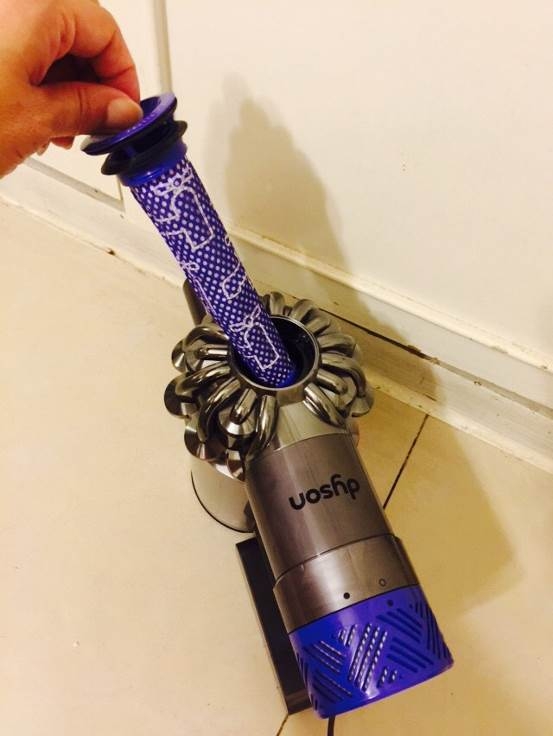 以往打掃時,打掃所揚起的灰塵都會讓全家大過敏不舒服,但是Dyson V6有濾網的功能,讓灰塵吸進去後不會隨著排出來的空氣一起飄揚到空氣中!這點也是我當初考慮購買的重要原因,打掃後讓家中可以變乾淨,空氣也更清新,家人間的包水餃大賽也比較少再發生