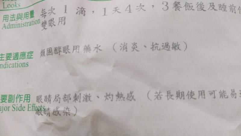 ↓因為女兒眼睛嚴重過敏,整天眨眼睛,有時候會癢到瘋狂揉眼睛,眼科醫師只好暫時先開類固醇眼藥水減緩過敏症狀,醫生還問說,我們家有沒有養毛小孩,事實上,我們家是沒有養寵物的~