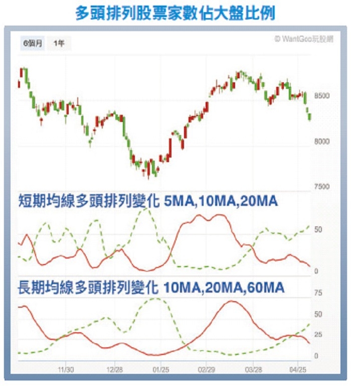 上次專欄我有再次提醒大家可以觀察多空頭排列股票家數變化這個數據來判斷盤勢,我說了很多次以最近這個數據變化來看,如果歷史會重演的話,現在已經空頭排列家數超過多頭排列家數,後勢下跌的機率比上漲高很多。