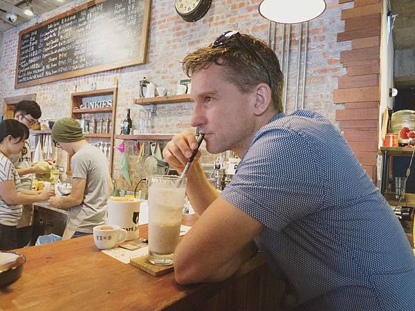 才剛推開店門,正在泡咖啡的男店員熱情的跟我們道聲早