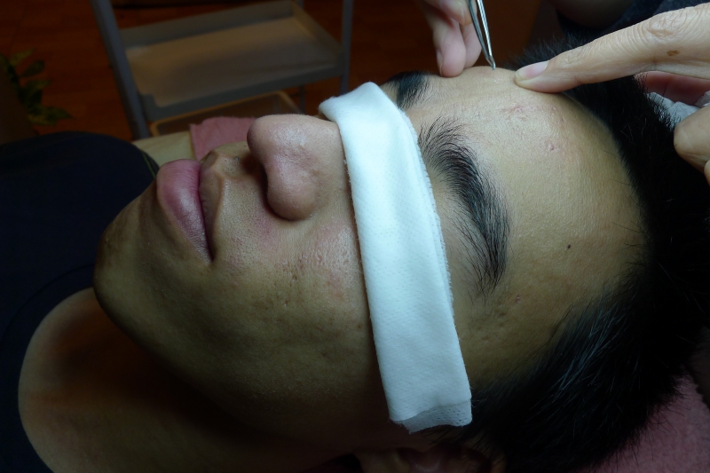經果酸治療後,黑頭粉刺脫落,白粉刺持續排出,便能進一步做深層清潔。