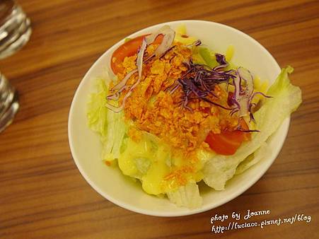 沙拉上面灑些餅乾