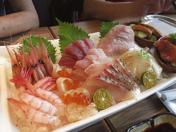 今天很豪邁地點了一些平常自己跟朋友來都捨不得點的豪華菜色,像是野草刺身大盛和海陸組合串燒組