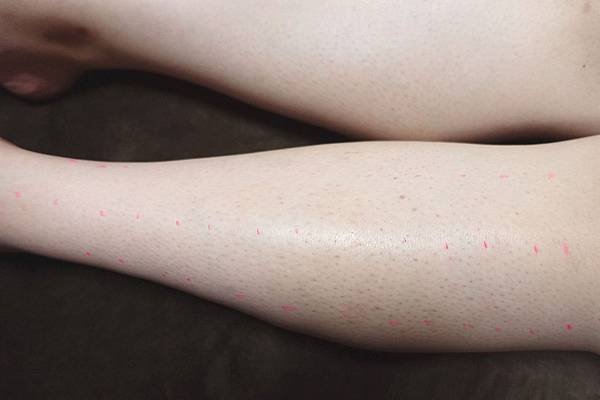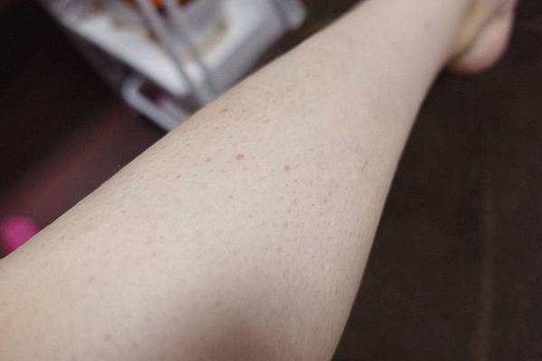 可以看到我的小腿有一些紅點 還有一些比較大黑黑的毛孔