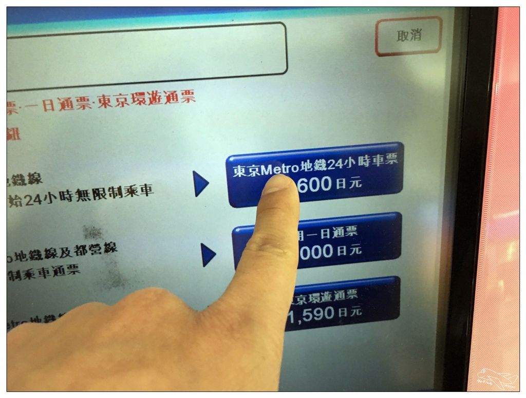 3.東京Metro有自己的24小時券(Tokyo Metro ticket)(這張可以機器買、櫃檯買,文末有示範)。